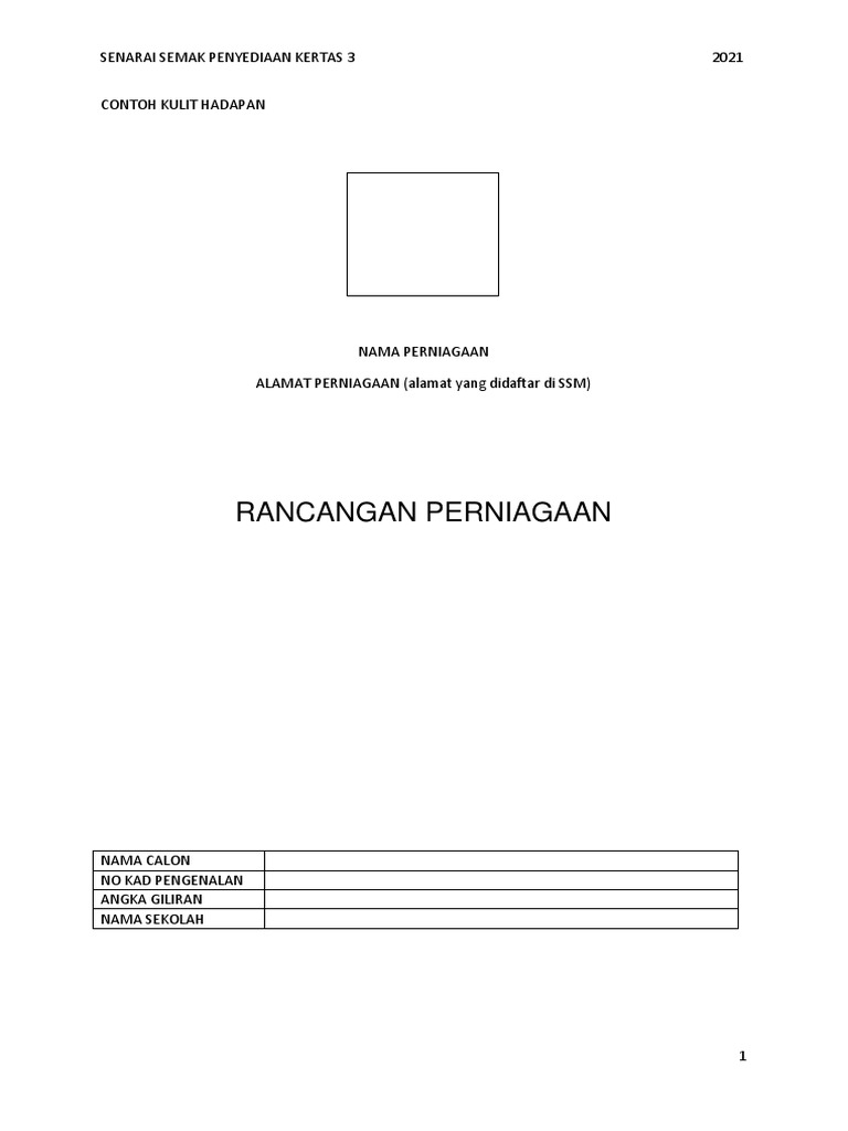 Rancangan Perniagaan: Senarai Semak Penyediaan Kertas 3 2021 PDF