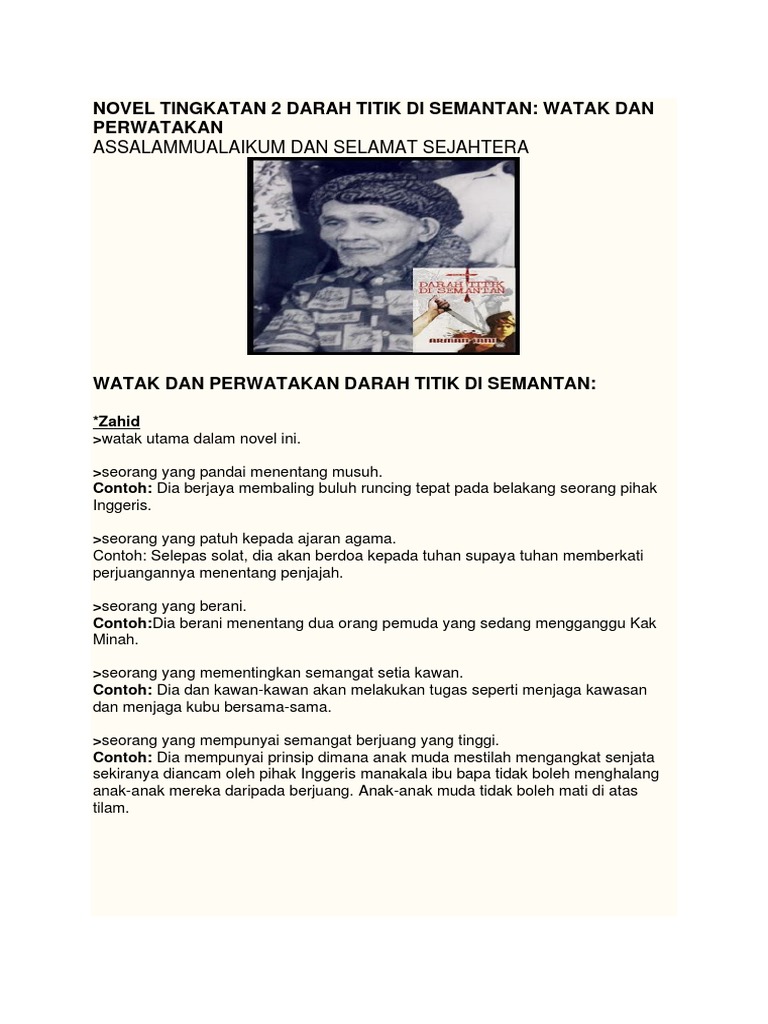 NOVEL TINGKATAN 2 DARAH TITIK DI SEMANTAN Watak Dan Perwatakan PDF